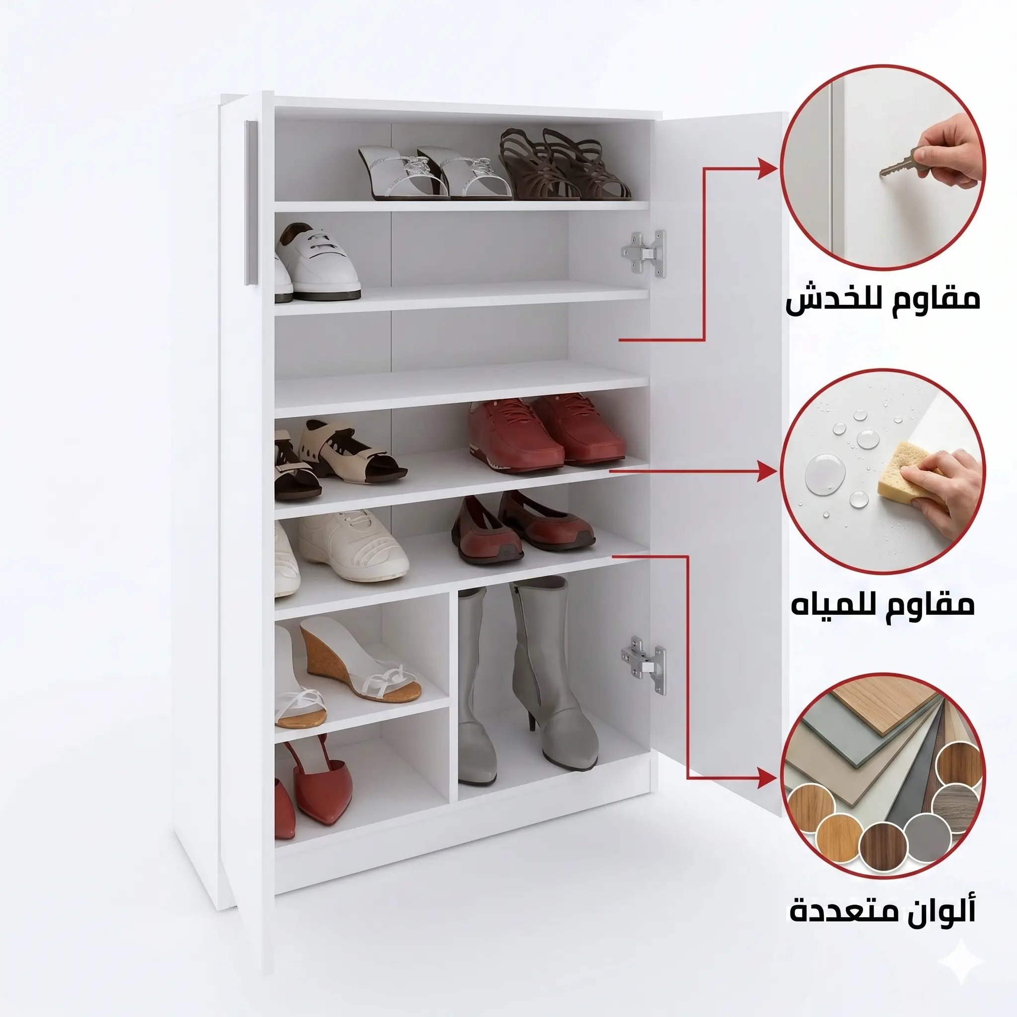 تم تصميمها بعناية فائقة لاستغلال المساحات الصغيرة والكبيرة بكفاءة عالية، مما يساعدك على التخلص من فوضى الأحذية عند المدخل والحفاظ على نظافة وأناقة المكان.