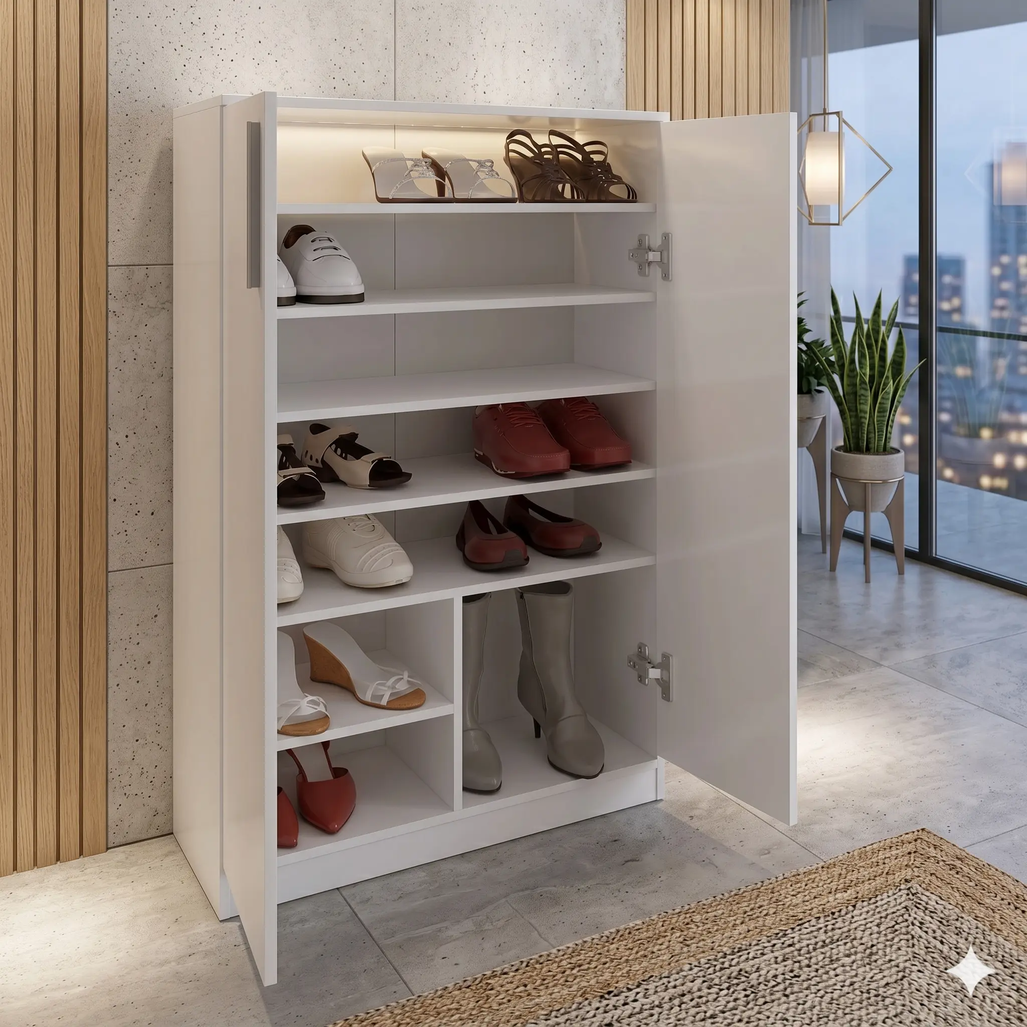 - سعة تخزين كبيرة: تحتوي على أرفف داخلية قابلة للتعديل أو بنظام "القلاب" الذكي لتستوعب أكبر عدد من الأحذية بمختلف الأحجام.