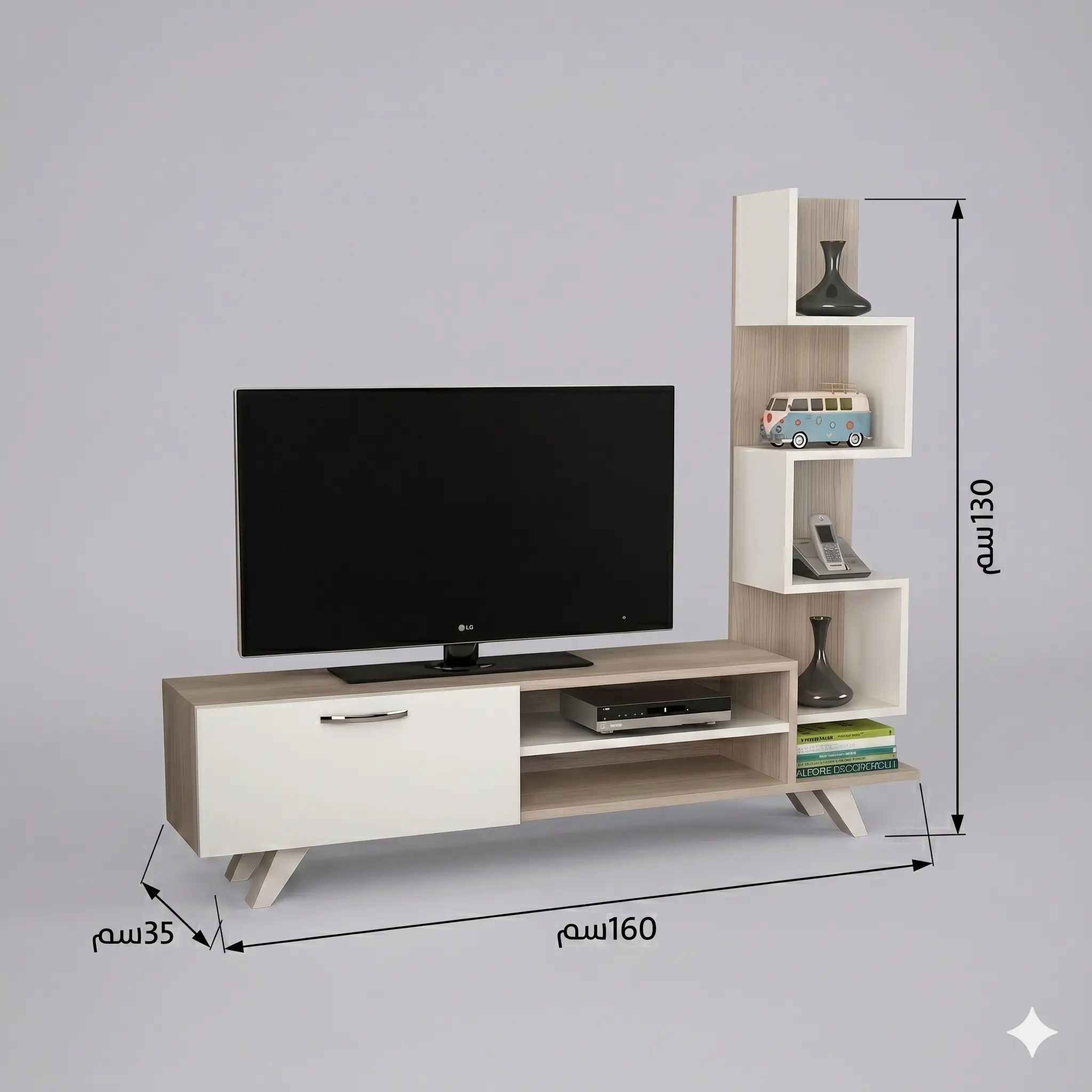 سواء كنت تمتلك شاشة كبيرة أو تبحث عن قطعة توفر لك مساحة تخزين إضافية، فإن هذه الطاولة هي الخيار الأمثل بفضل متانتها وتصميمها الذي يناسب مختلف أذواق الديكور الداخلي.