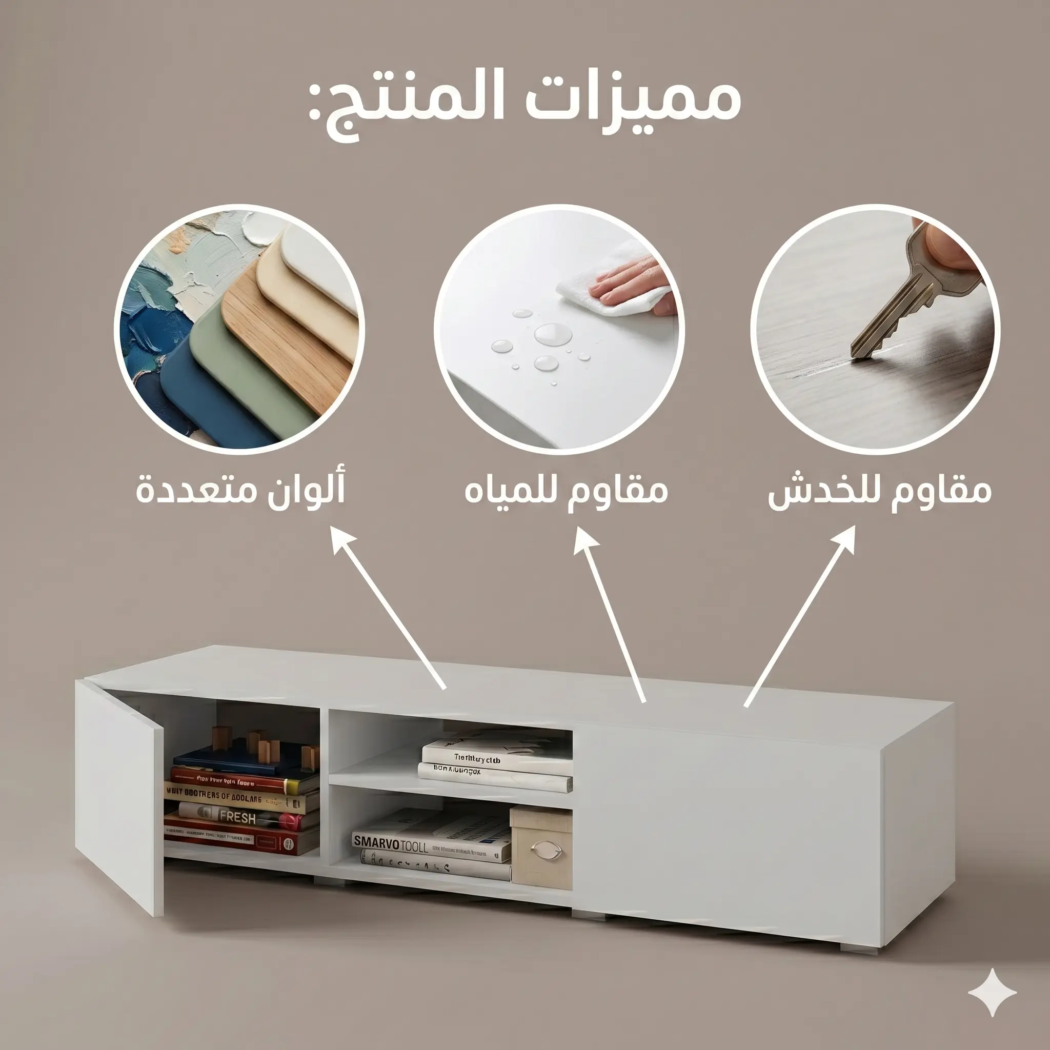 " استمتع بأفضل ترابيزة شاشة مودرن مزودة بأرفف ووحدات تخزين ذكية لإخفاء الأسلاك وترتيب أجهزتك. جودة عالية وتصميم يناسب المساحات المختلفة. اطلبها اليوم!"