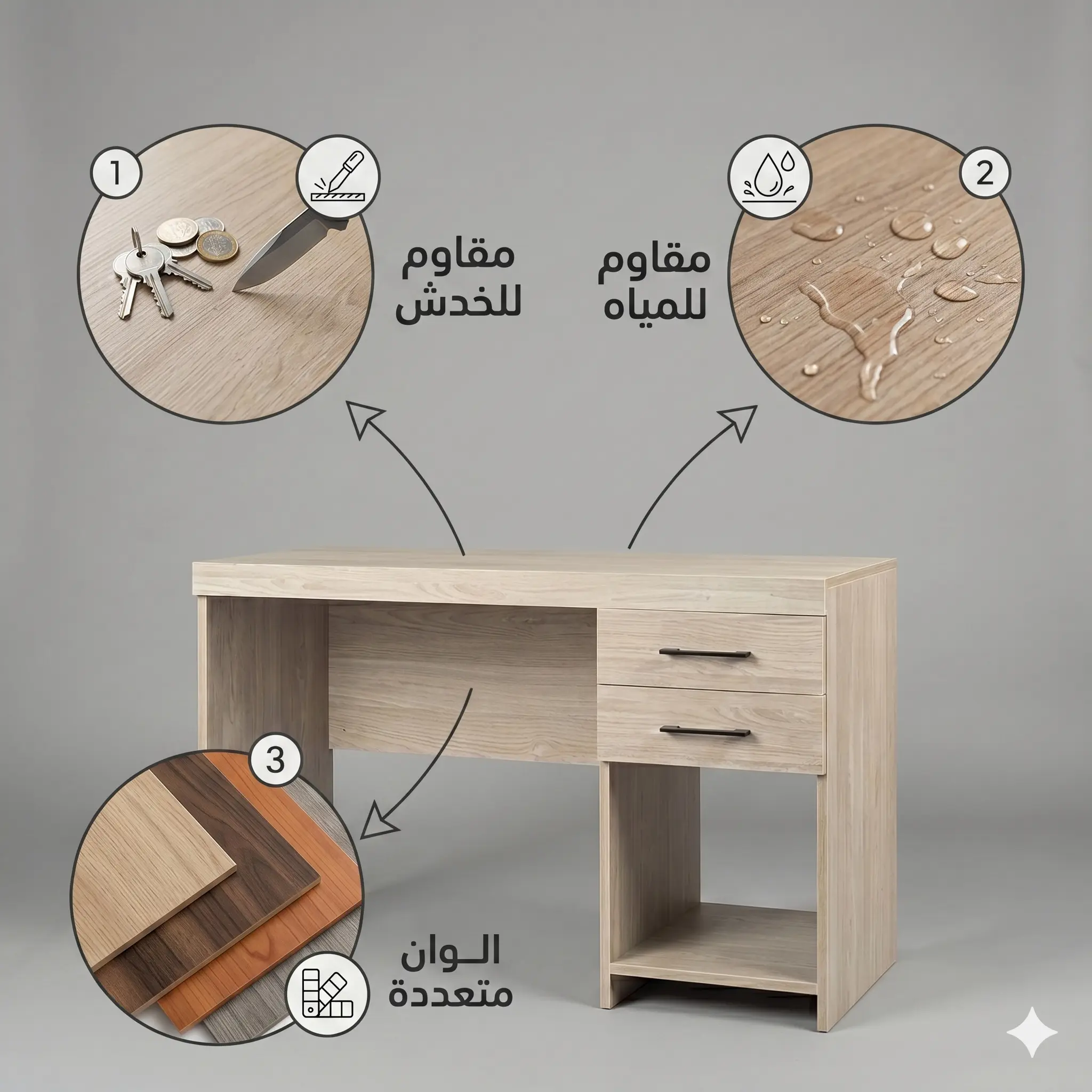 نقدم لك مكتب دراسي مودرن مصنوع من خشب MDF عالي الجودة بتصميم عصري يناسب الطلاب، المكاتب المنزلية، وغرف الشباب، مع مساحة مثالية للمذاكرة والعمل بأقصى درجات الراحة والترتيب.