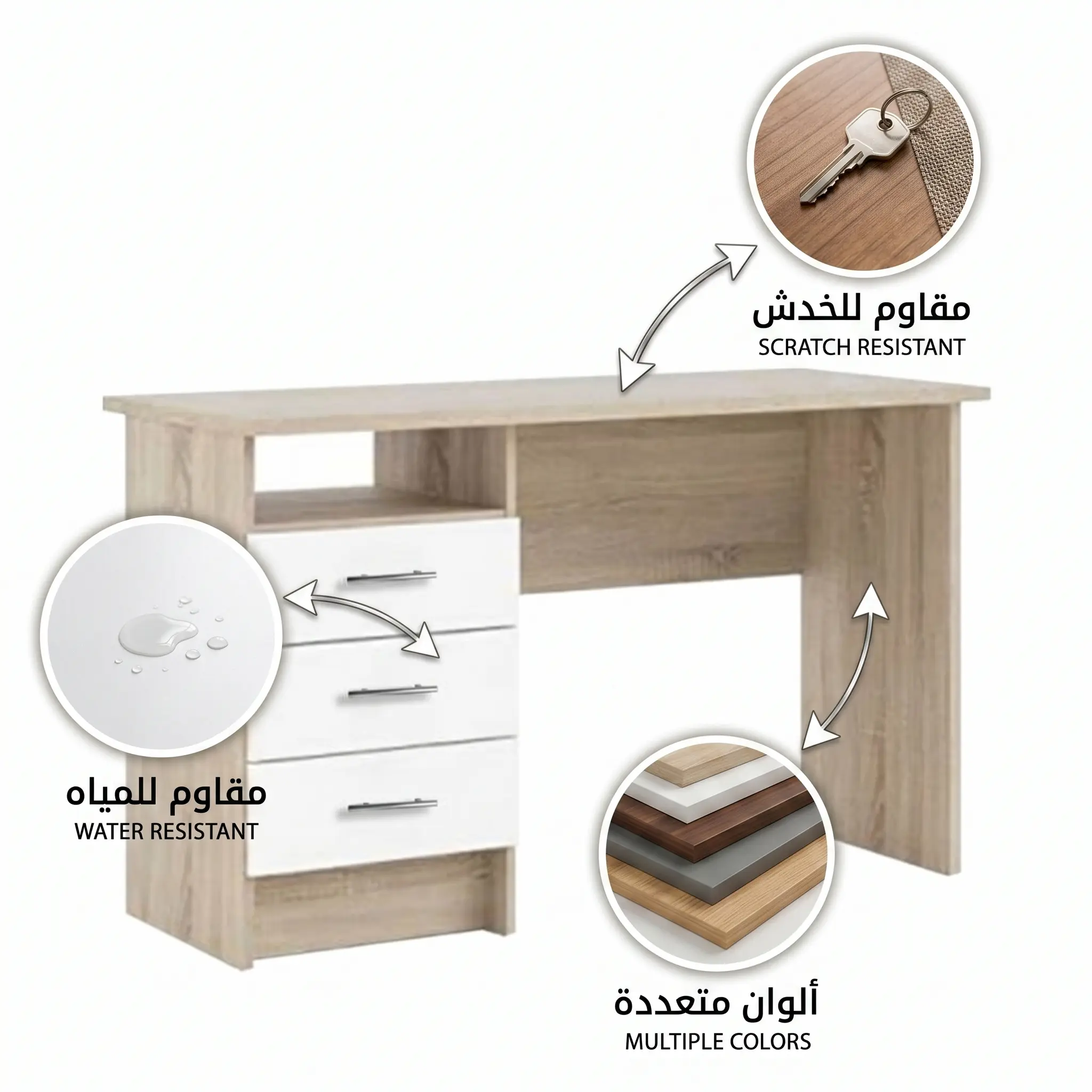 "هل تبحث عن مكتب دراسي مودرن للمساحات الضيقة؟ اكتشف تشكيلتنا من المكاتب الذكية التي توفر لك المساحة والأناقة في آن واحد. جودة عالية، أسعار تنافسية، وشحن سريع."