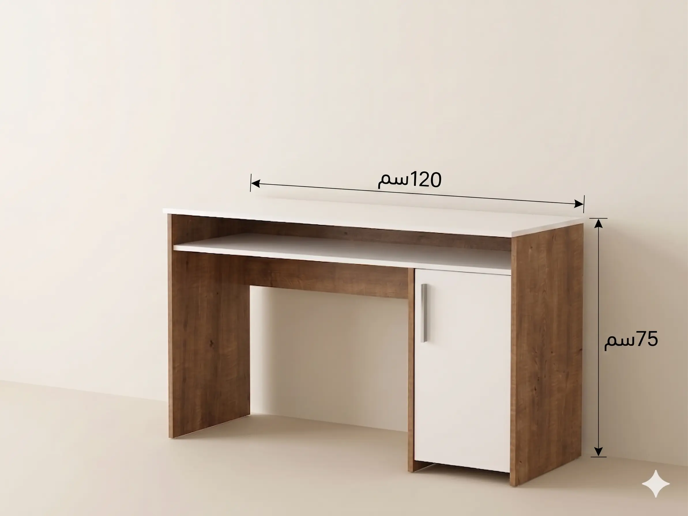 مكتب دراسي بتصميم حديث يوفّر لك بيئة مثالية للتركيز والإنتاجية، مصنوع من خشب MDF المتين المقاوم للاستخدام اليومي، مع سطح واسع يتيح وضع اللابتوب، الكتب، والأدوات الدراسية بسهولة.
